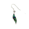 N Z Paua Shell Curved free form drop Earring 7x25mm stg silver